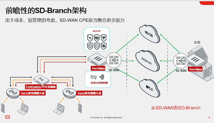 更低的长效成本 通过fortGate进行接入层管理,毫无运维压力,